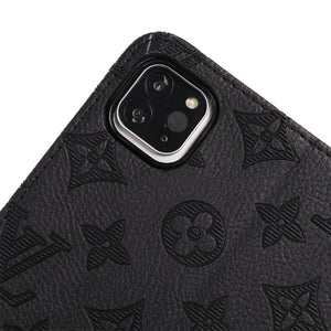 3D Embossed Canvas Monogram Holster Apple iPad Flip Cover With Stand Function